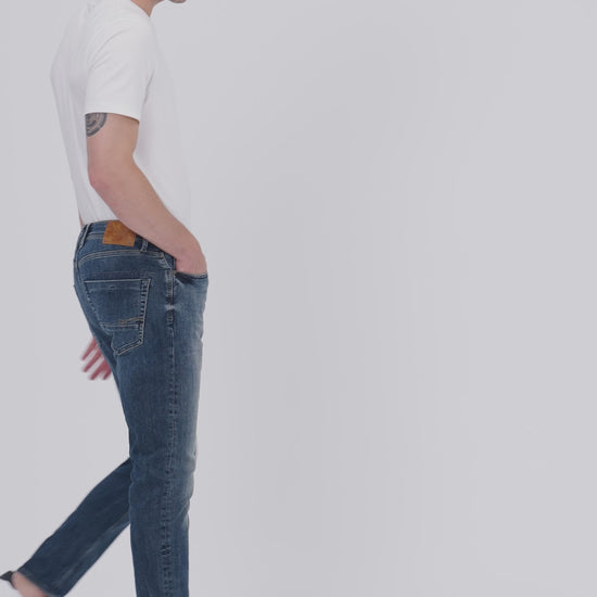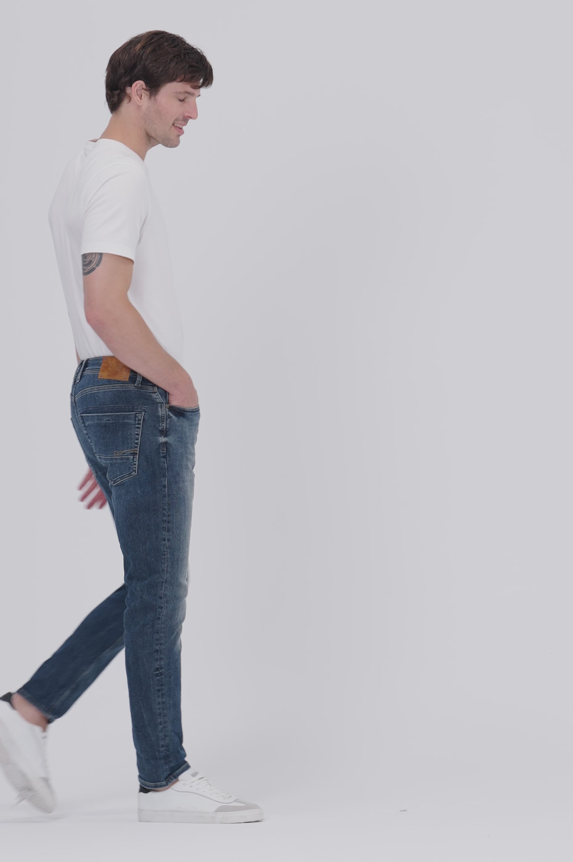 Diese vielseitige Jeans ist die ideale Basis für deine Herbstgarderobe. Kombiniere sie mit warmen Strickpullovern, lässigen Flanell-Hemden oder schlichten Longsleeves. Die dunkel-blaue Waschung mit den charakteristischen Aufhellungen passt zu braunen Lederboots und erdigen Tönen.