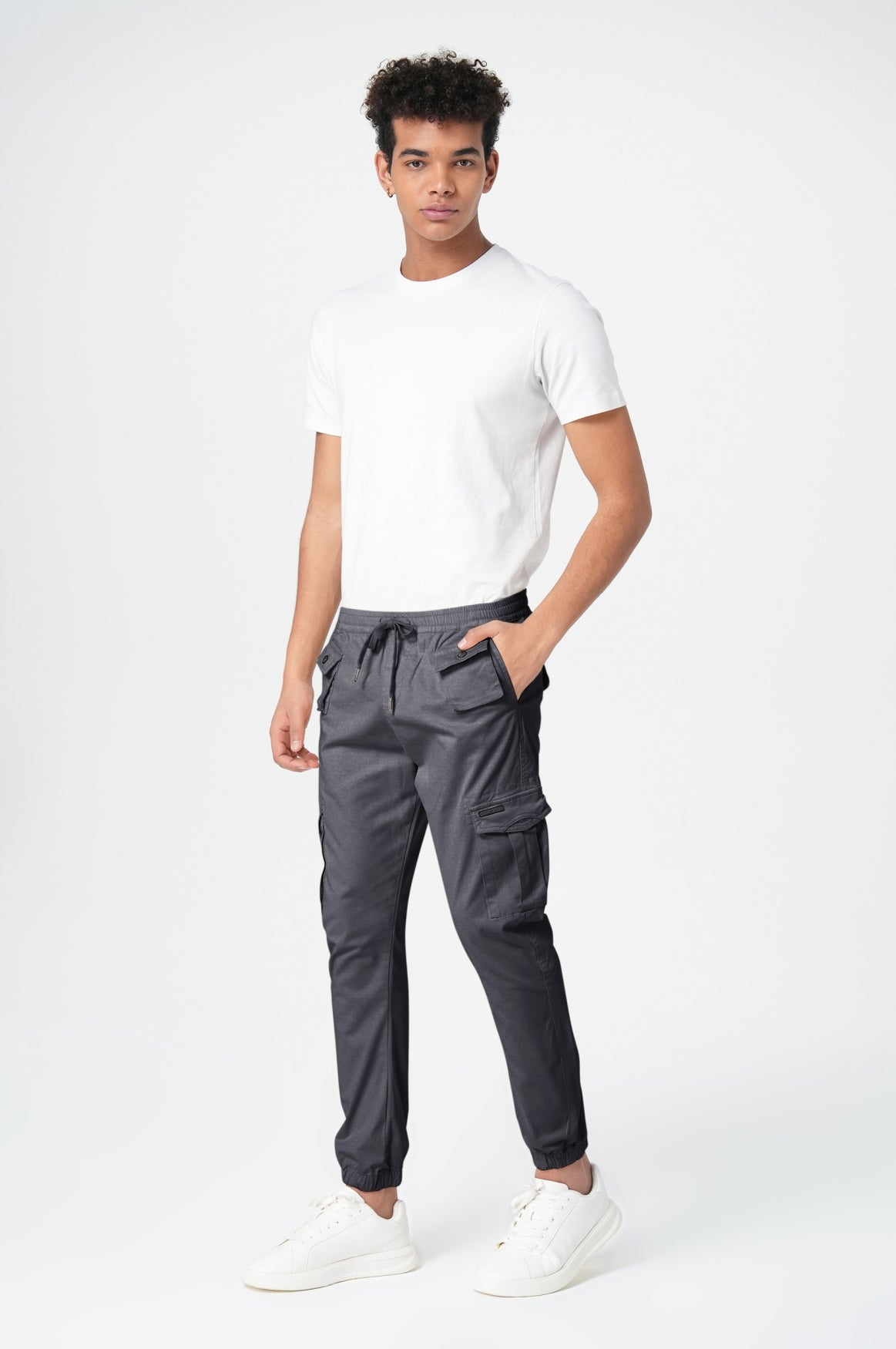 Die Edison Cargo Hose in elegantem Anthrazit überzeugt durch ihre perfekte Kombination aus urbanem Style und praktischer Funktionalität. Mit ihrem modernen Jogger-Schnitt und den elastischen Bündchen am Knöchel sorgt sie für eine zeitgemäße Silhouette, die sich optimal deinem Körper anpasst. Der bequeme Elastikbund mit Kordelzug ermöglicht eine individuelle Passform und garantiert höchsten Tragekomfort im Alltag. Besonders praktisch: Die zahlreichen Cargo-Taschen an den Seiten bieten reichlich Stauraum für deine persönlichen Gegenstände. Die anthrazitgraue Farbe ist ein vielseitiger Begleiter, der sich mühelos mit verschiedenen Looks kombinieren lässt und dennoch ein Statement setzt.Perfekte Balance aus Komfort und urbaner Ästhetik
