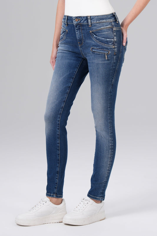 Höchsttemperatur der Bügeleisensohle von 110 °C. Entspricht auch der Bügeleisen-Temperaturstufe „Polyacryl, Polyamid (Nylon), Acetat“. Glanz- oder druckempfindliche Artikel notfalls mit trockenem Zwischentuch oder auf der Rückseite bügeln. Kein Bügeln mit Dampf. Nicht verziehen.