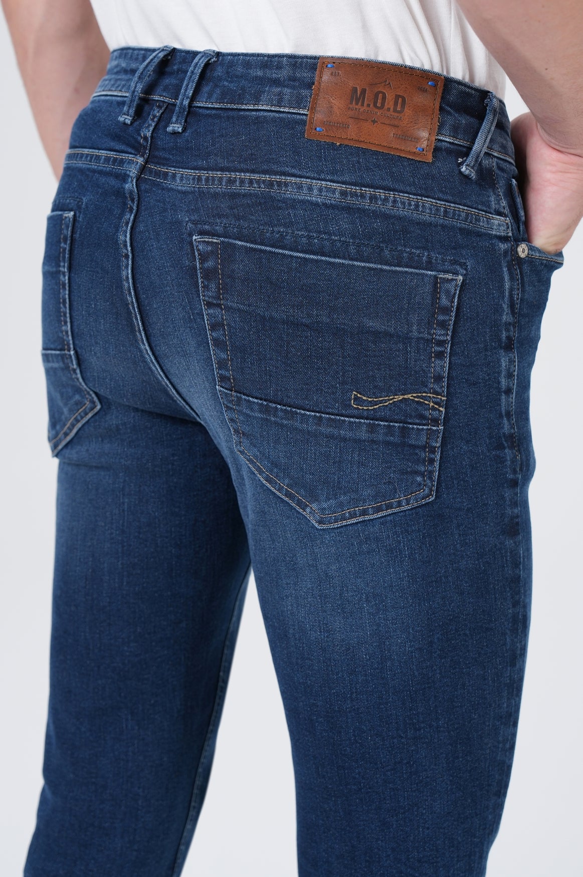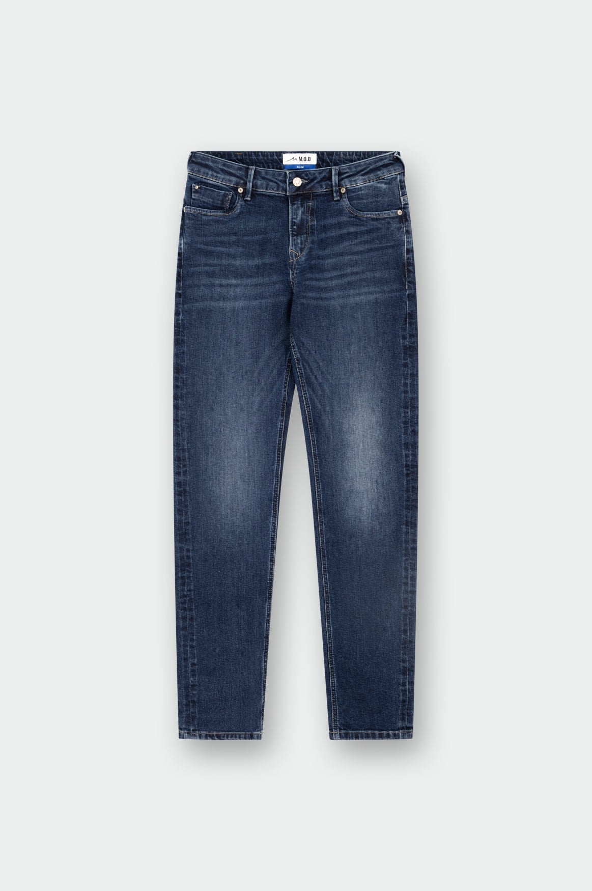 Die MARCEL Herren Slim Fit Jeans Edit Blau von M.O.D überzeugt mit ihrer zeitgemäßen Schnittführung und hochwertigen Materialqualität. Der Materialmix aus 98% Baumwolle und 2% Elasthan sorgt für optimalen Tragekomfort und die nötige Bewegungsfreiheit im Alltag. Die mittelintensive Blaufärbung mit dezenten Wascheffekten verleiht der Jeans einen authentischen Denim-Charakter, während die saubere Verarbeitung mit kontrastierenden Nähten für langanhaltende Qualität steht. Die schlanke Silhouette schmeichelt der Figur, ohne dabei einzuengen, und bietet eine moderne Alternative zu klassischen Regular-Schnitten. Der klassische 5-Pocket-Aufbau mit funktionalen Gesäßtaschen und praktischen Münztaschen macht diese Jeans zum verlässlichen Begleiter. Die mittlere Bundhöhe und die durchgehend schlanke Beinführung bis zum Saum schaffen eine elegante Linie, die sich zu verschiedenen Oberteilen kombinieren lässt. Hochwertige Metallknöpfe und ein stabiler Reißverschluss runden die durchdachte Ausstattung ab.Ideales Fundament für deine Herbstgarderobe