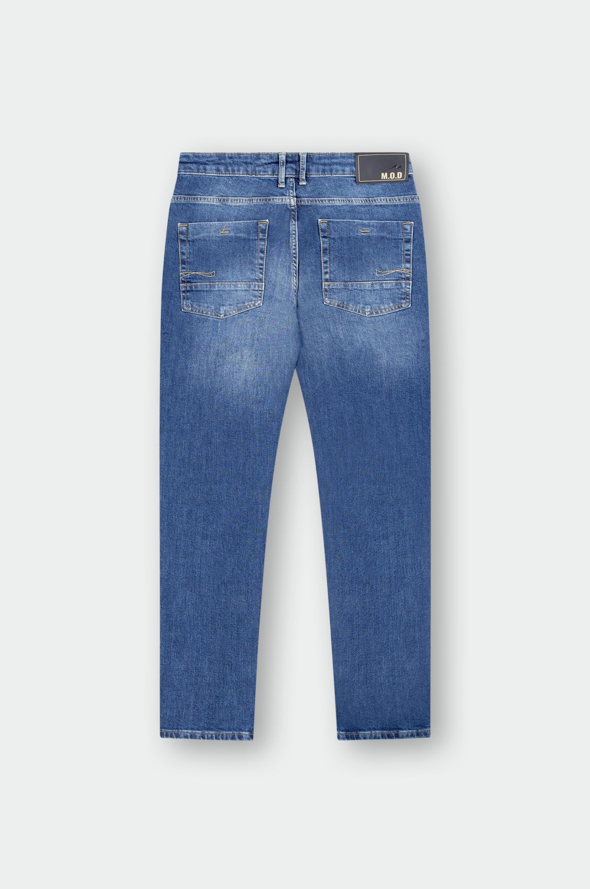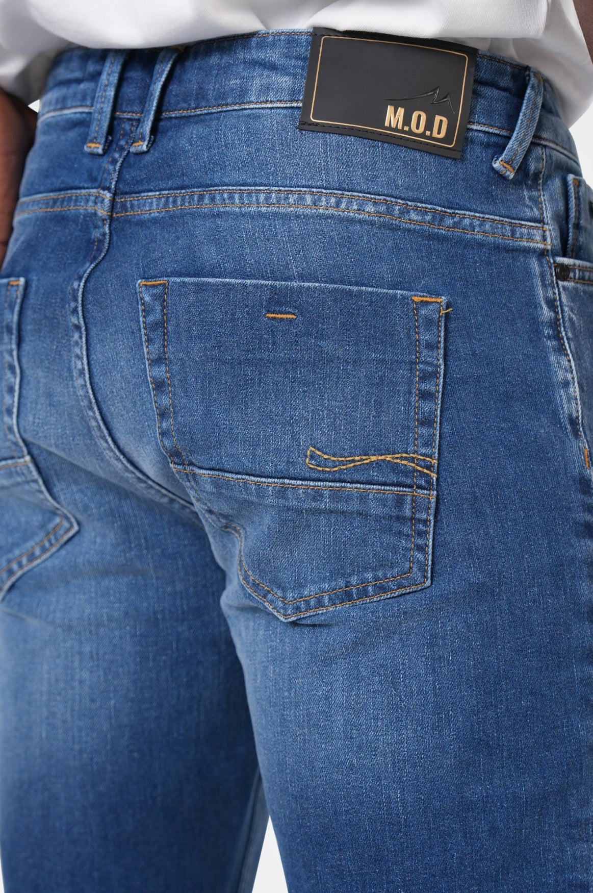 Die “Marcel Slim” von M.O.D bietet einen modernen, schmalen Schnitt und ein klassisches Five-Pocket-Design. Der robuste Denim-Stoff sorgt für eine perfekte Passform und gibt der Hose gleichzeitig eine stylische Note. Mit ihrer mittelhohen Leibhöhe und dem angenehmen Stretchanteil bietet sie hohen Tragekomfort und eine tolle Silhouette. Die “Marcel Slim” ist die ideale Wahl für alle, die eine vielseitig kombinierbare Jeans mit einem schlichten, aber dennoch modischen Look suchen.