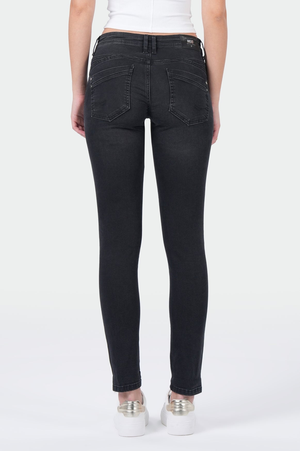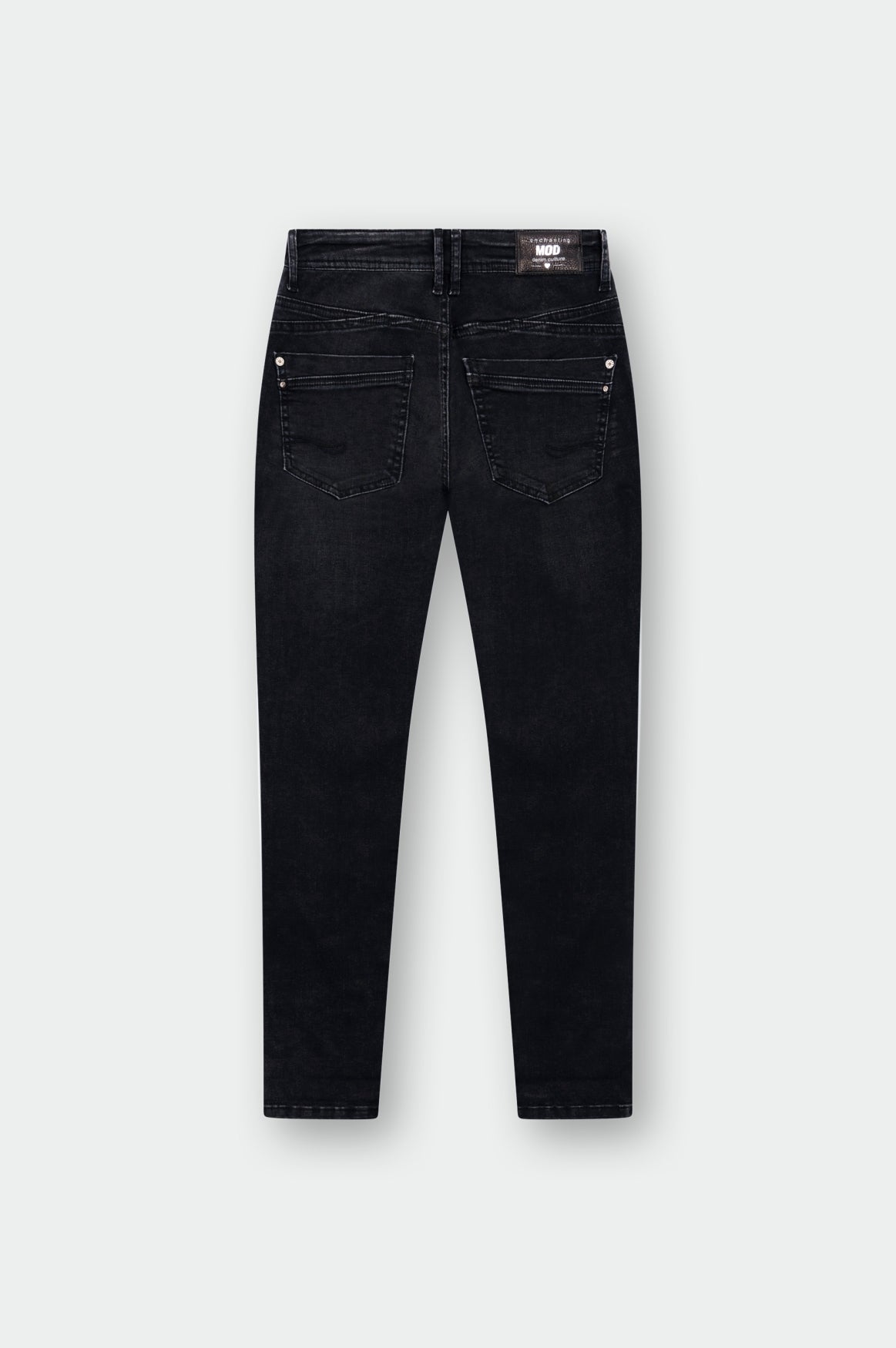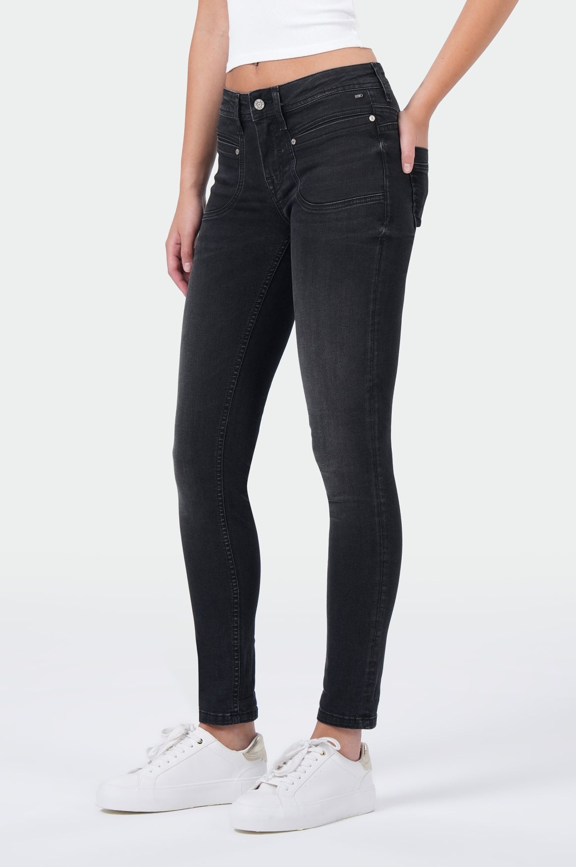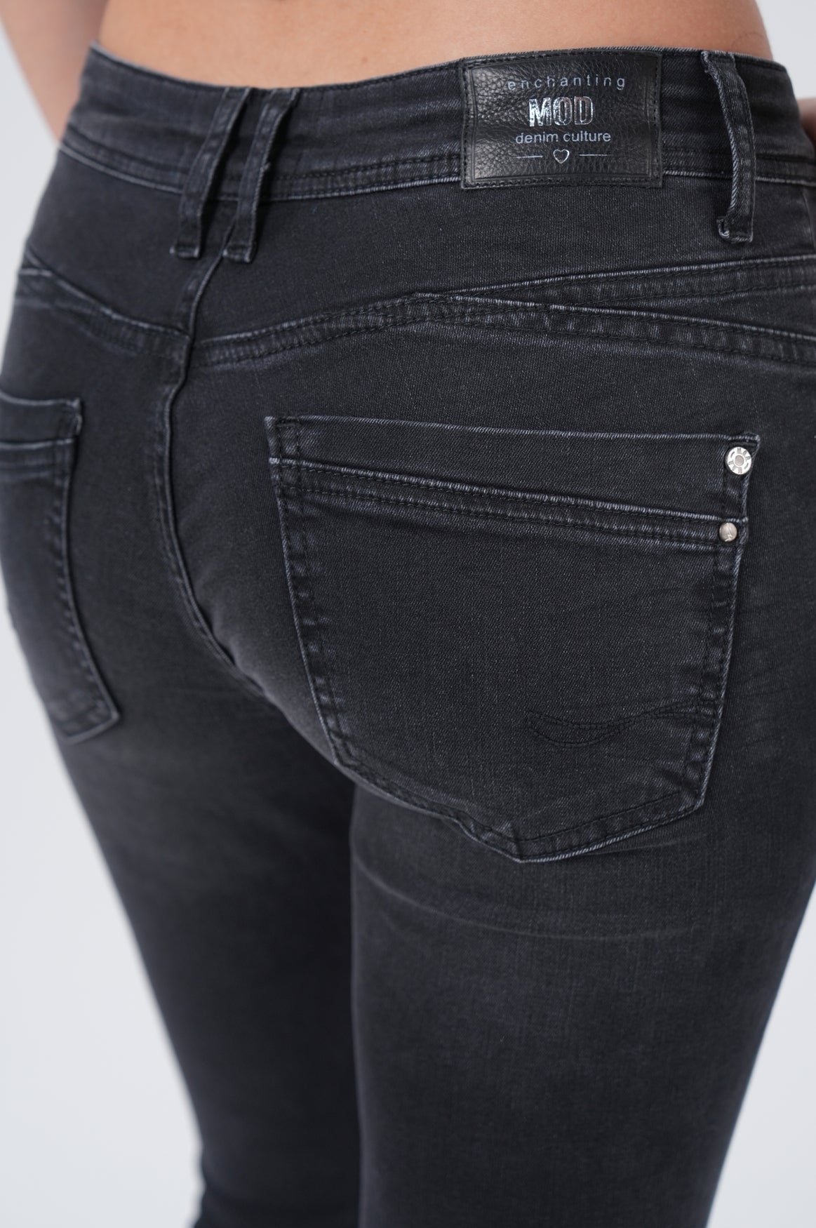 Die MARRY Damen Slim Fit Jeans in Ebony Blau von M.O.D besticht durch ihre raffinierte dunkle Waschung und zeitgemäße Schnittführung. Der hochwertige Materialmix aus 98% Baumwolle und 2% Elasthan sorgt für optimale Bewegungsfreiheit bei perfekter Formstabilität. Die schlanke Slim-Passform betont deine Silhouette vorteilhaft, während die mittlere Bundhöhe angenehmen Tragekomfort bietet. Besonders auffällig sind die doppelten Brusttaschen mit silbernen Druckknöpfen, die dem klassischen 5-Pocket-Design eine moderne Note verleihen. Die präzise Steppnähte und sauber verarbeiteten Kanten unterstreichen die hochwertige Verarbeitung.Moderne Akzente für herbstliche Looks
