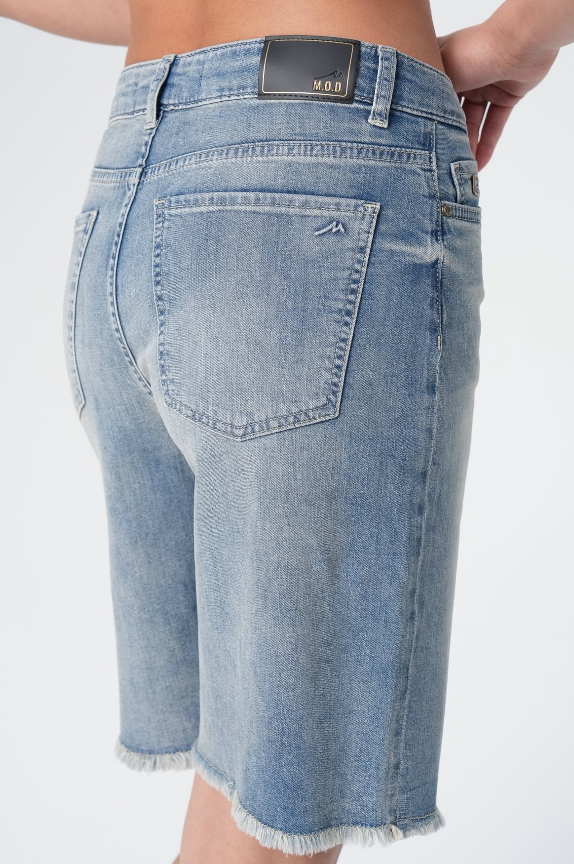Nelly Damen Jeans Shorts Dream Blau – High-Waist-Bermuda mit ausgefranstem Saum
