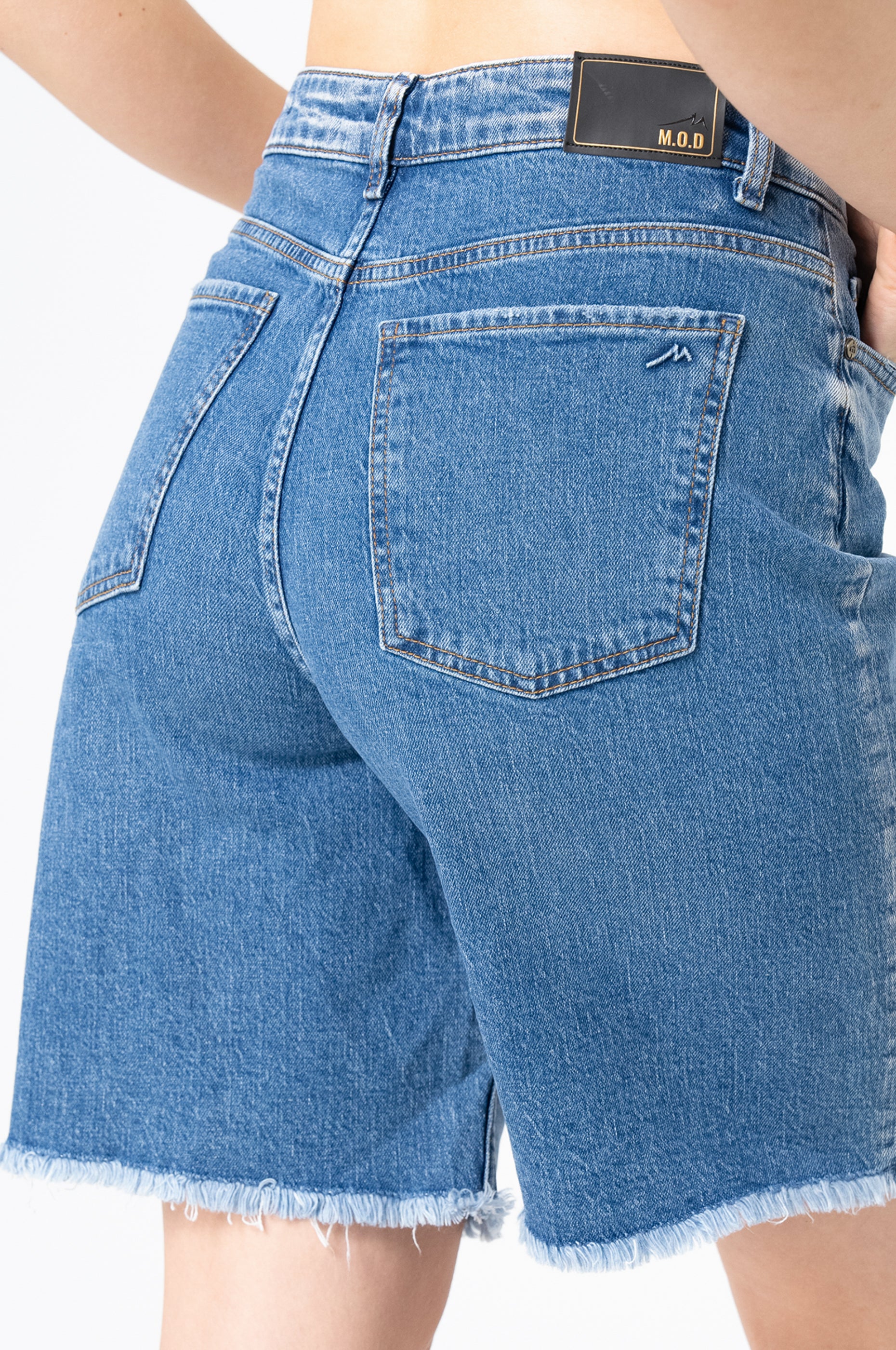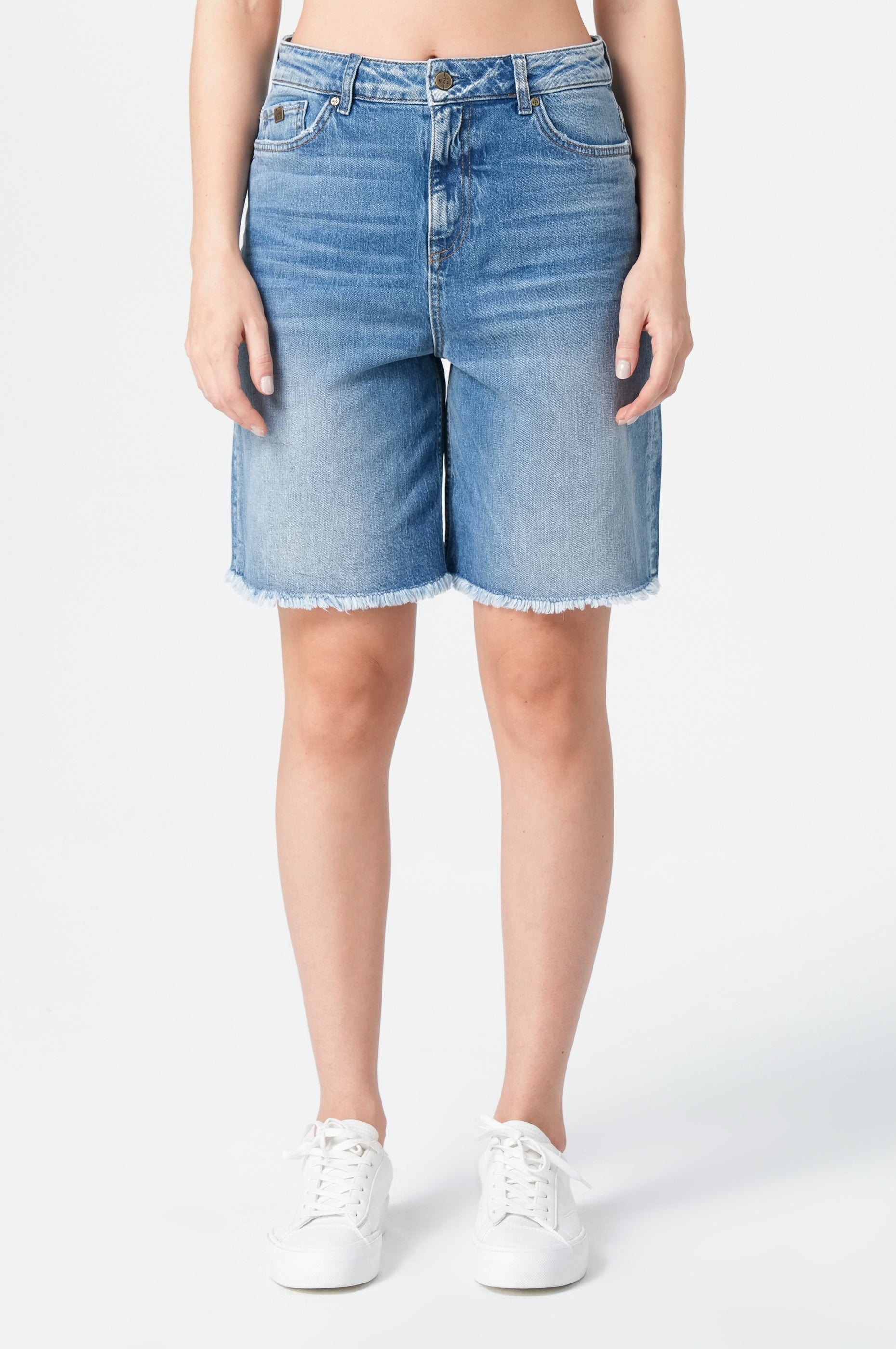 Die Nelly Shorts in strahlendem Dazzle Blau bringen frischen Wind in deine Sommergarderobe. Mit ihrer selbstbewussten High-Waist-Silhouette und dem modischen Fransen-Saum vereinen sie femininen Style mit lässiger Attitüde. Der hochwertige Denim aus 99% Baumwolle und 1% Elasthan schenkt dir angenehmen Tragekomfort bei maximaler Bewegungsfreiheit. Die ausgewogene Länge sorgt für eine schmeichelhafte Beinlinie, während die charakteristische Dazzle Blau-Waschung mit subtilen Aufhellungen an den Oberschenkeln dem Look Tiefe und Authentizität verleiht. Die präzise Verarbeitung mit dekorativen Fransen am Saum setzt einen modischen Akzent, der jedem Outfit eine sommerfrische Note verleiht.Vielseitiges Styling-Talent für sonnige Tage