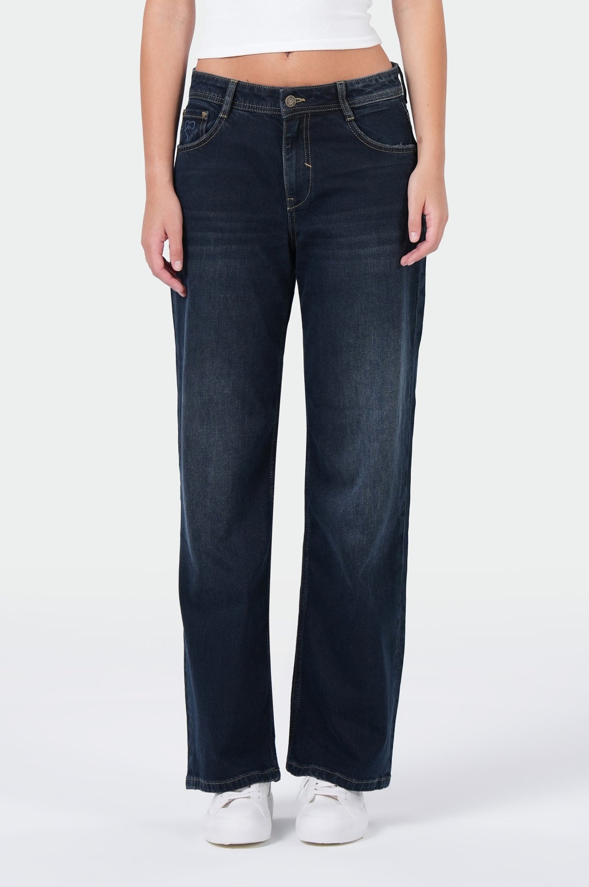 Die NICOLA Damen Wide Leg Jeans in Verona Blau von M.O.D überzeugt mit ihrer lässigen Silhouette und der tiefen, satten Waschung. Der Materialmix aus 99% Baumwolle und 1% Elasthan sorgt für angenehmen Tragekomfort und dezente Flexibilität, ohne die charakteristische Denim-Struktur zu beeinträchtigen. Die mittlere Bundhöhe und der weit ausfallende Beinverlauf kreieren eine entspannte, feminine Silhouette, die kühlere Herbsttage stilvoll begleitet. Das gleichmäßige Indigo-Blau mit leichten Aufhellungen an den Oberschenkeln verleiht der Jeans natürliche Tiefe und lässt sich mit warmen Pullovern und Stiefeln kombinieren. Die klassische 5-Pocket-Gestaltung mit stabilen Metallnieten und sauberen Kontrastnähten unterstreicht den authentischen Denim-Charakter. Der hochwertige Knopfverschluss und die robusten Gürtelschlaufen sorgen für zuverlässigen Halt, während die ausgefransten Saumabschlüsse einen modernen Touch setzen.Entspannte Basis für herbstliche Outfit-Kombinationen