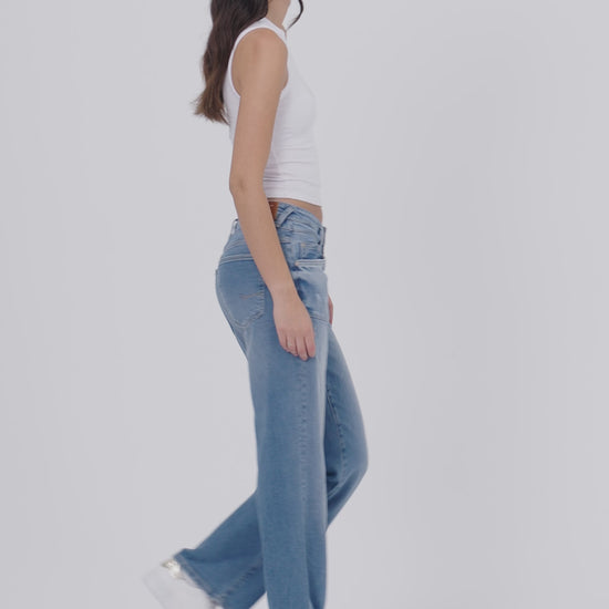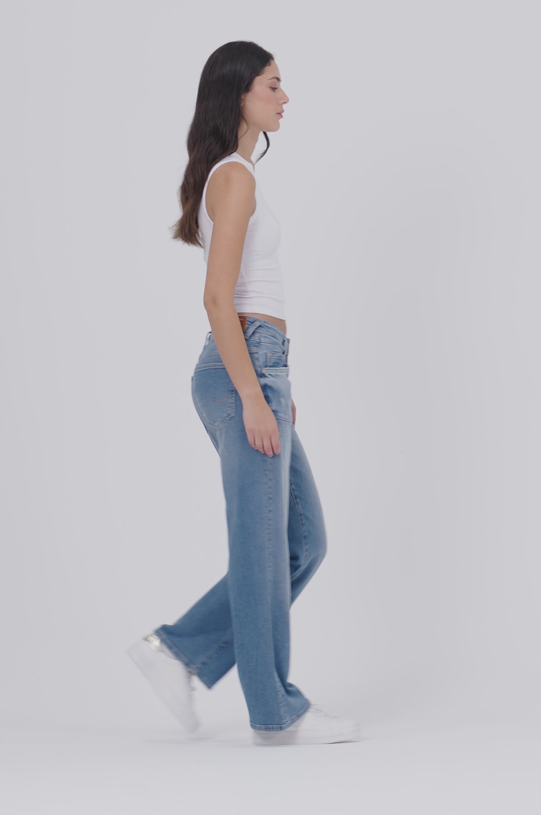 Die NINI Damen Wide Leg Jeans in Earth Blau von M.O.D begeistert mit ihrer lässigen Silhouette und der authentischen Waschung in warmen Blautönen. Der Materialmix aus 98% Baumwolle und 2% Elasthan sorgt für angenehme Bewegungsfreiheit bei gleichzeitig stabilem Halt. Die mittlere Bundhöhe und der charakteristisch weite Beinverlauf schaffen eine entspannte, moderne Passform, die perfekt zu den aktuellen Trends passt. Zwei aufgesetzte Fronttaschen verleihen der Jeans einen markanten Look, während der klassische 5-Pocket-Schnitt zeitlose Funktionalität bietet. Die gleichmäßige Waschung mit dezenten Fading-Effekten unterstreicht den authentischen Denim-Charakter und passt zu herbstlichen Erdtönen. Saubere Kontrastnähte und ein braunes Lederlabel am Bund setzen hochwertige Akzente.Moderne Trendsilhouette für entspannte Herbstoutfits