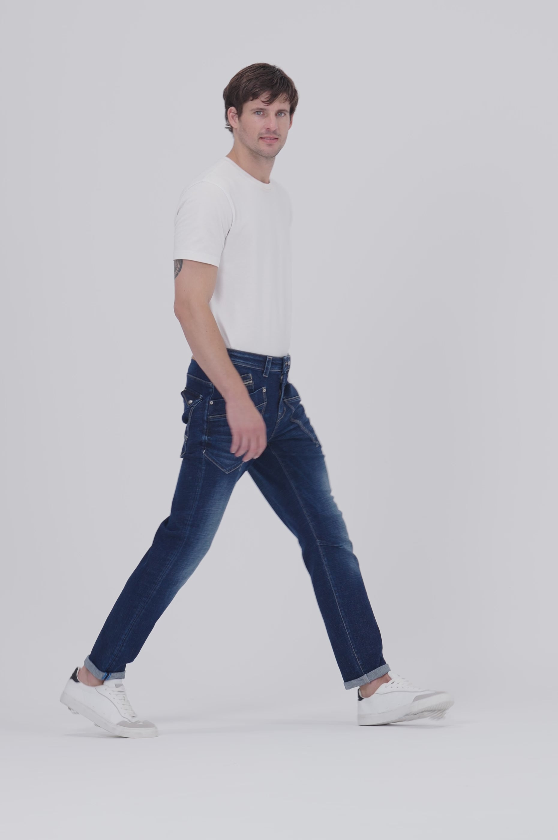 Die kräftige Blaufärbung harmoniert perfekt mit warmen Strickoberteilen, rustikalen Hemden oder lässigen Longsleeves. Dank der stabilen Denim-Qualität und der durchdachten Taschenaufteilung ist diese Jeans ideal für aktive Tage geeignet. Die umgeschlagenen Säume verleihen dem Look eine entspannte Note und lassen sich problemlos mit robusten Boots oder Sneakers kombinieren. Ein vielseitiger Herbst-Essential, der Funktionalität und Style elegant vereint.