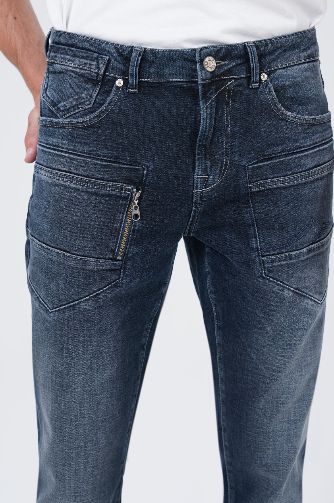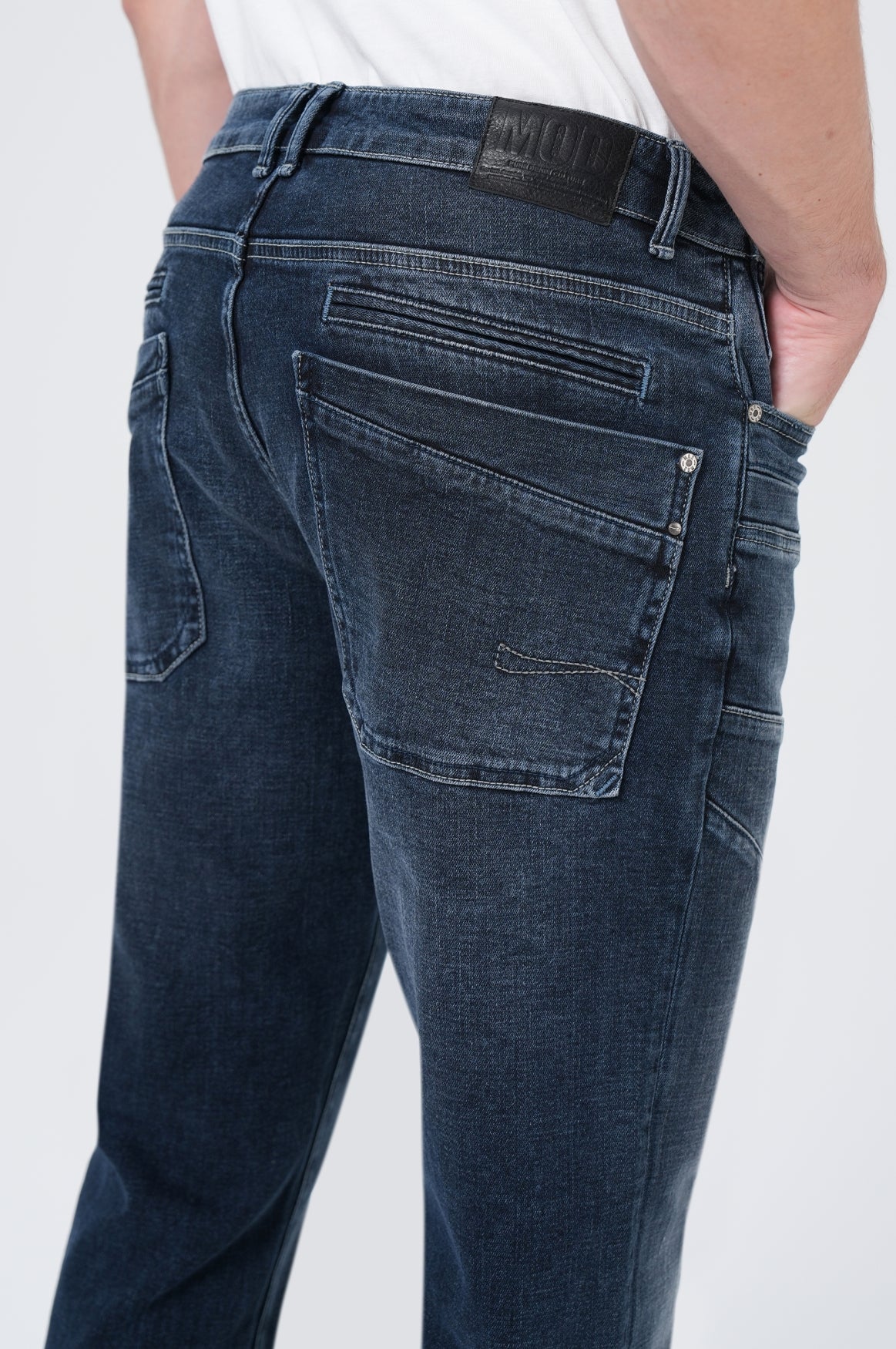 Die PATRICK Herren Regular Fit Jeans in Even Blau von M.O.D überzeugt mit ihrer durchdachten Waschung und den markanten Details. Der hochwertige Materialmix aus 98% Baumwolle und 2% Elasthan bietet dir optimalen Tragekomfort und dezente Flexibilität für den Alltag. Besonders charakteristisch sind die sorgfältig platzierten Ziernähte an den Oberschenkeln und der praktische Reißverschluss am Knie, der dem klassischen Design eine moderne Note verleiht. Die mittlere Bundhöhe und der gerade Beinverlauf der Regular Fit sorgen für eine entspannte Passform, die sich perfekt mit herbstlichen Layering-Looks kombinieren lässt.Durchdachte Details für authentischen Denim-Style