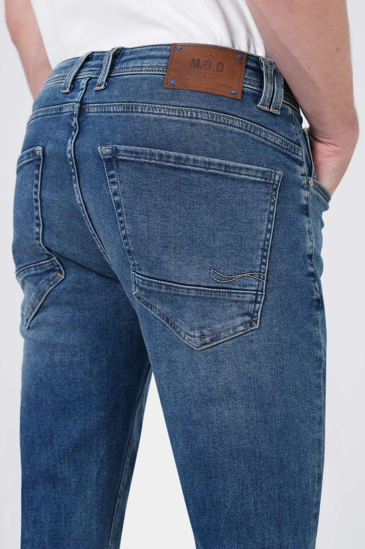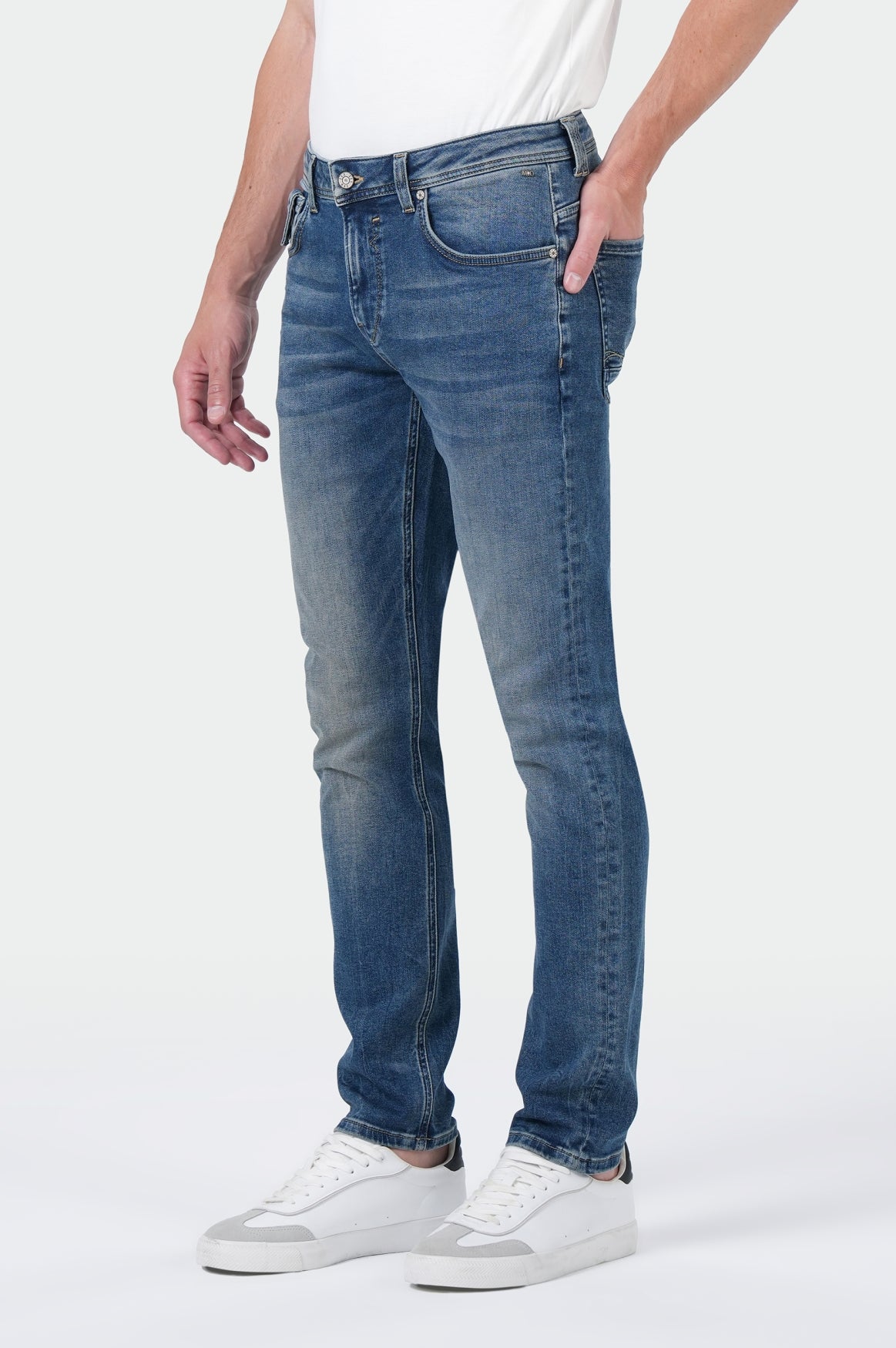 Die RICARDO Herren Regular Fit Jeans in Estate Blau überzeugt mit ihrer klassischen mittelblauen Waschung und den dezenten Fade-Effekten, die dem robusten Denim authentischen Charakter verleihen. Der hochwertige Materialmix aus 98% Baumwolle und 2% Elasthan sorgt für optimalen Tragekomfort und perfekte Bewegungsfreiheit – ideal für die kühleren Herbsttage. Die Regular Fit Passform mit mittlerer Bundhöhe und geradem Beinverlauf schmeichelt jeder Figur und bietet dir den ganzen Tag über angenehmen Sitz. Der klassische 5-Pocket-Aufbau mit präzise verarbeiteten Nähten und stabilen Gürtelschlaufen unterstreicht den zeitlosen Look dieser vielseitigen Jeans.Perfekter Begleiter für herbstliche Outfits