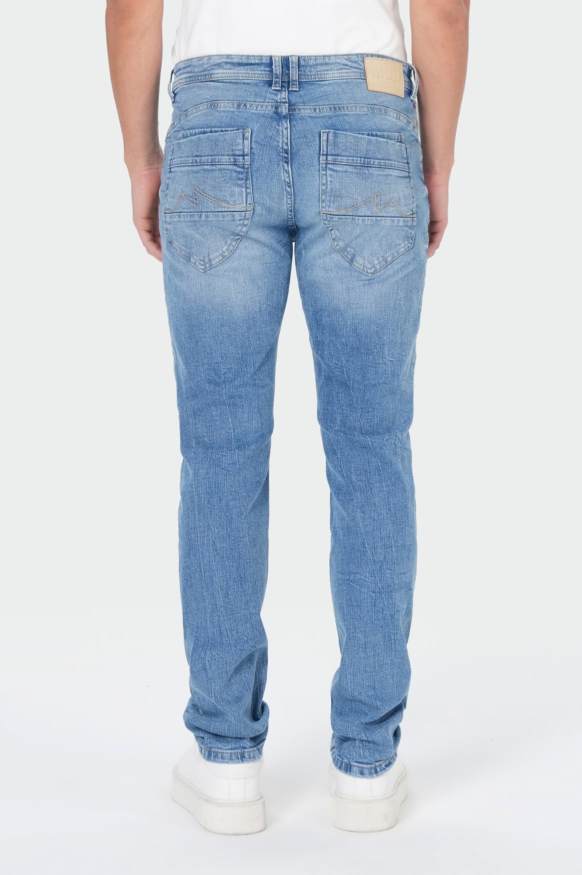 Die Fizzy Blau Waschung verleiht dieser Herren Jeans ihren besonderen Charakter mit hellen und dunkleren Denim-Nuancen für eine lebendige Optik. Die Medium Rise Bundhöhe und die leicht schmale Beinform schmeicheln deiner Silhouette ohne einzuengen. Das weiche Denim-Material bietet angenehmen Tragekomfort und passt sich perfekt an deine Bewegungen an. Kombiniere die RONY mit einem lässigen Shirt und weißen Sneakers für einen entspannten Freizeit-Look oder style sie im Frühling mit einem leichten Hemd. Diese Jeans ist mehr als nur ein Basic – sie ist dein zuverlässiger Style-Partner für jeden Anlass.