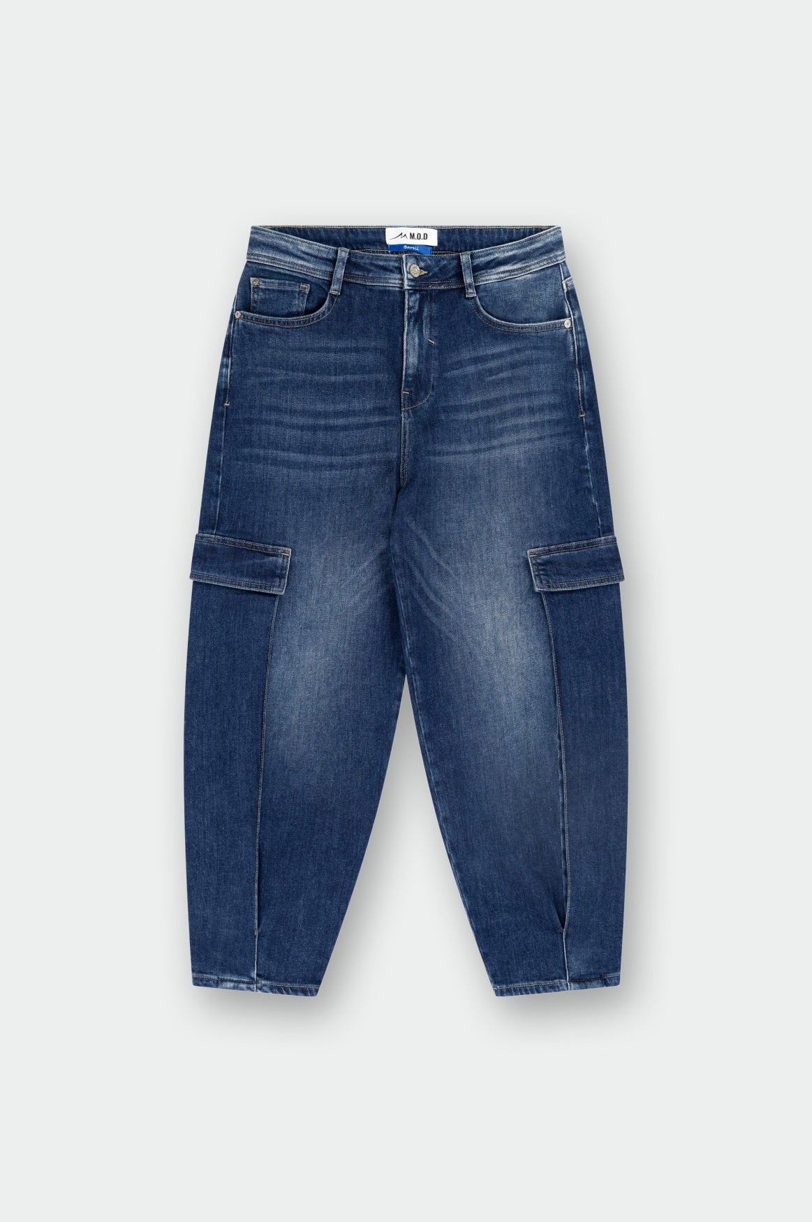 Die VIVIEN C Damen Wide Leg Jeans in Evident Blau von M.O.D setzt auf eine moderne Cargo-Ästhetik mit extra weitem Beinverlauf. Die mittelblaue Waschung mit dezenten Abriebeffekten verleiht der Jeans einen authentischen Used-Look, während der robuste Denim aus 99% Baumwolle und 1% Elasthan optimalen Tragekomfort bietet. Besonders charakteristisch sind die aufgesetzten Cargo-Taschen an den Oberschenkeln, die sowohl praktischen Nutzen als auch einen urbanen Streetwear-Akzent setzen. Die verkürzte Länge endet knapp über dem Knöchel und schafft eine lässige Silhouette, die perfekt zu Sneakern oder derben Boots harmoniert.Entspannte Passform trifft auf funktionale Details